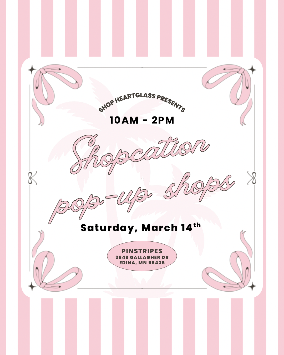 Shopcation with us at our pop-up shopping event at pinstripes in Edina, MN coming up on Saturday, March 14th!